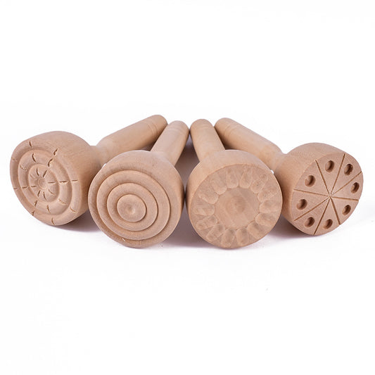 Large Wooden Sensory Playdough Dough Stamper Set Tool Kit 4 pieces