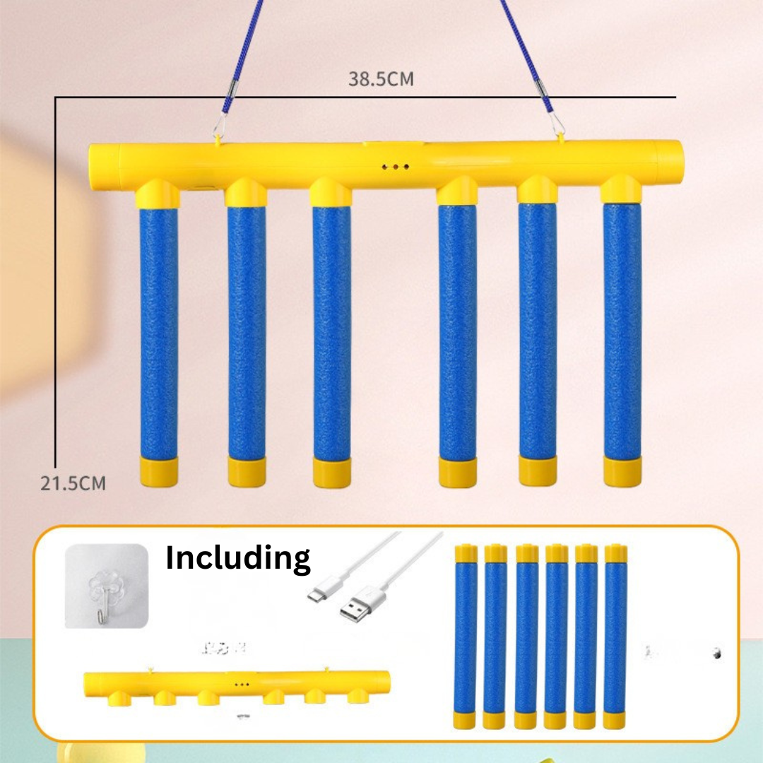 Tests kids reaction speed and motor skills. Very important to develop great co ordination. Levels of difficulty will randomly drop the batons at various times and delays. Chargeable via USB Type C Great for Kids to improve their skills great fun for the whole family!