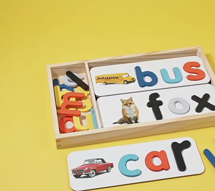 Large Wooden Alphabet Letters Word Spelling Game with Wooden Spelling cards
